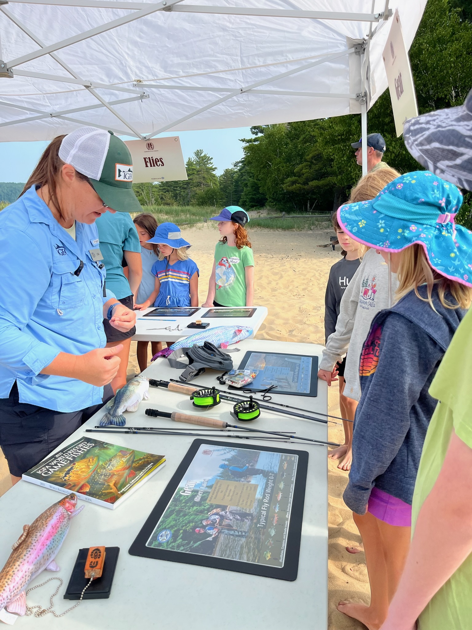 Speaking of Passports to Fly Fishing kits, we are happy to report that the prototype was completed in 2025 and tested at a Learn-to-Fly Fish event at Pictured Rocks National Lakeshore in Munising, Michigan, in July. These turnkey “fly fishing clinics in a box” will help implement in-person clinics and camps specific to teaching youth and adults how to fly fish. Based on the concept and resounding success of our Passports to Fishing program, participants at Pictured Rocks National Lakeshore traveled through five education stations with passports in hand to learn about gear, flies, knot tying, ethical angling, and fly casting.
