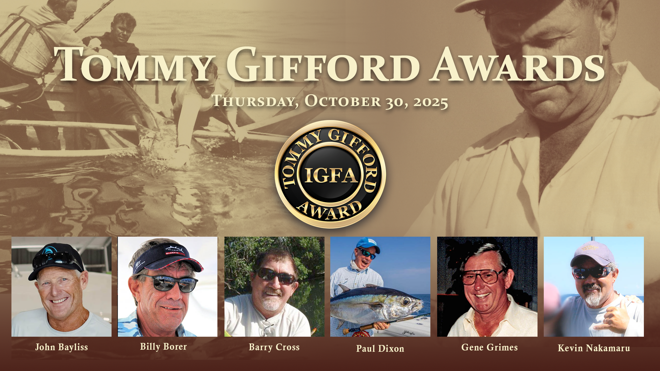 Each year, the Tommy Gifford Award recipients are selected by the IGFA Legendary Captains and Crew Committee, a distinguished panel of internationally renowned captains and mates chaired by Captain Skip Smith. This year’s recipients include Captain John Bayliss, Captain Billy Borer, Captain Barry Cross, Captain Paul Dixon, Captain Gene Grimes, and Captain Kevin Nakamaru.