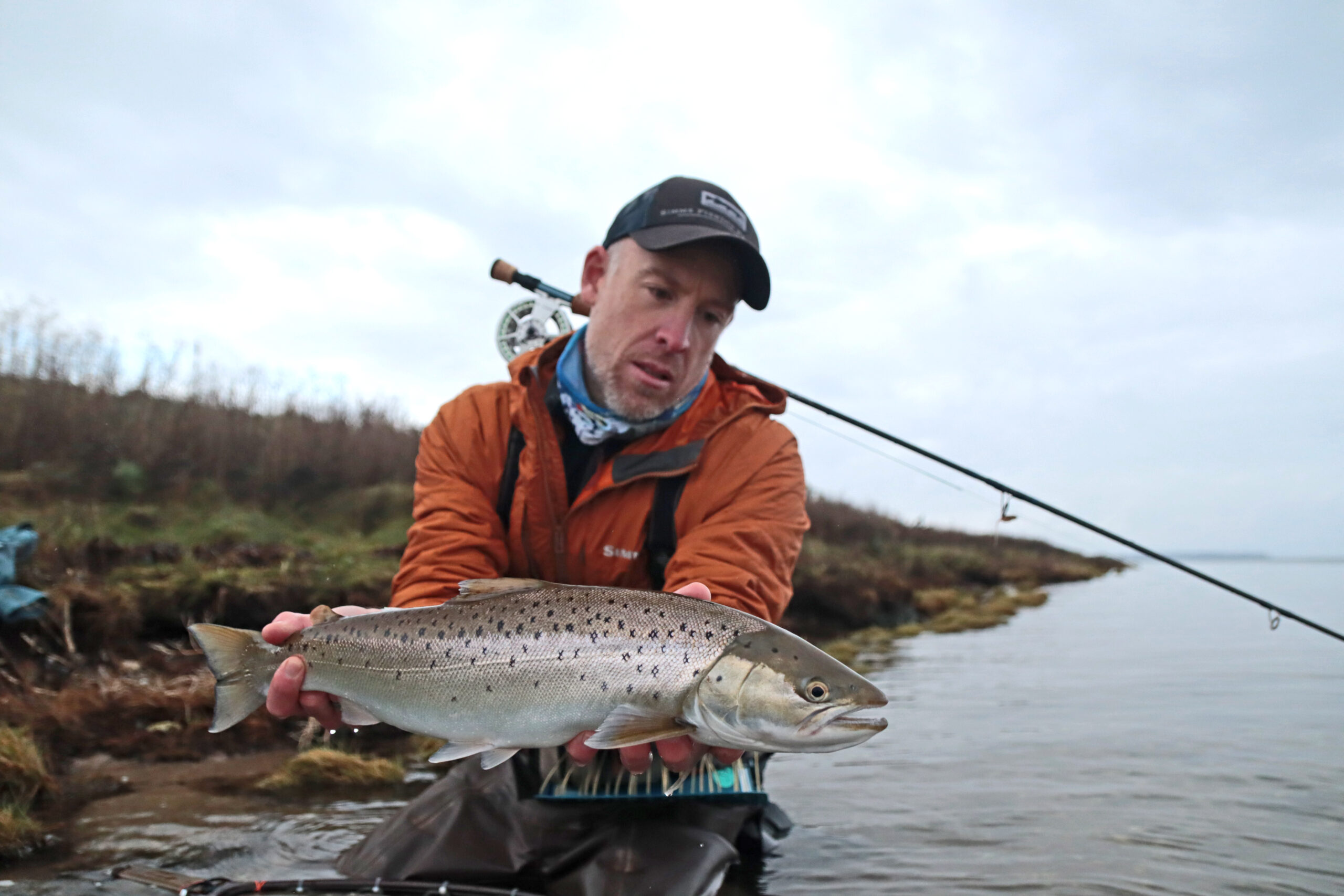 I have personally drawn this comparison over the years, observing how sea trout move across the flats with the same ghostlike subtlety as bonefish. Through my presentations, articles, and talks abroad, this analogy has become central to explaining the uniqueness of this fishery. It still amazes me that in northern Europe, in an environment so different from the tropics, one can find a fishery that brings the angler into the sea, wading slowly among crabs, seagrass, and small baitfish while scanning for the faint shadows of cruising trout. In summer, when the light is high and the sea turns transparent, the resemblance becomes even more striking. Trout can even take flies on the surface, rising delicately like trout on a river or slashing aggressively like tropical predators. Although sight-fishing can be extraordinary, most of the time the angler fishes by blind-casting and covering as much water as possible, searching for cruising fish.