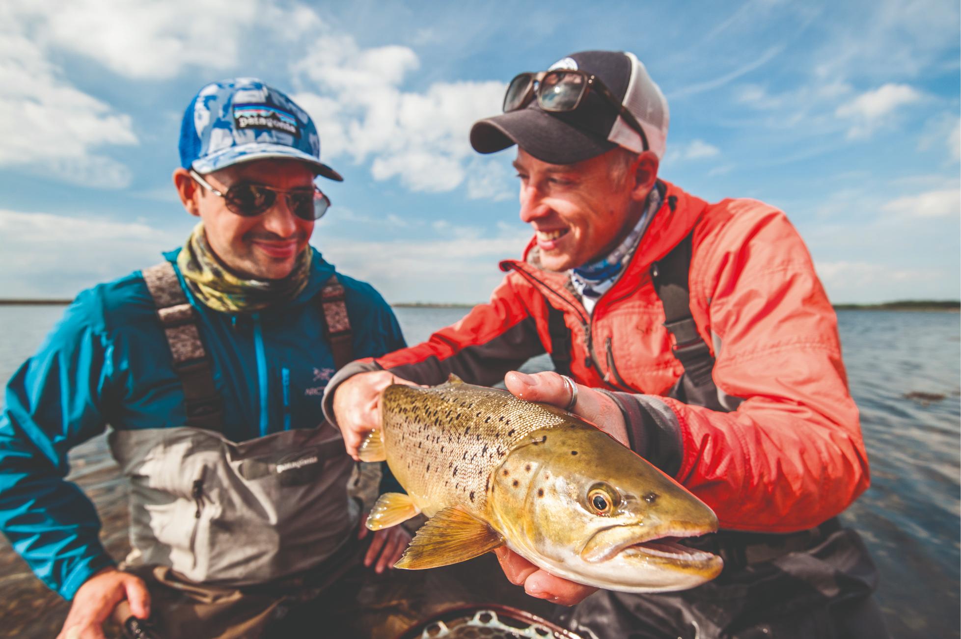 Flies vary with the season and the conditions. Shrimp patterns are constant companions, and sparse sand eel imitations, small baitfish flies, and modest streamers all have their moments. In summer, when trout feed high in the water column, surface flies, or larger foam patterns can produce exhilarating takes. One of today's most popular and reliable patterns is the “Jan Kenobi” fly, developed a few years ago by Jan Nachtigal, a guide from the previously mentioned lodge, as an all-around, easy-to-fish and easy-to-tie imitation that has proven remarkably effective. Success depends on understanding not only what the trout are feeding on, but also how the water is moving. Calm seas reward subtle, natural presentations, while wind and waves call for patterns with greater presence and movement.