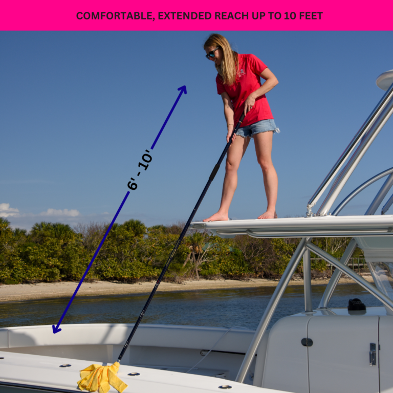 Palm Beach Reach embodies the unmatched quality and craftsmanship you expect from TD Mop. Designed for seamless maintenance on deck, this versatile extension handle is available in 4–6 feet and 6–10 feet. Pair with TD Mop brushes and mop heads. Crafted with high-grade royal blue carbon fiber materials, it offers exceptional durability and lightweight handling. Thoughtful features like PVC and foam grips ensure maximum comfort and control, while the guidelines enable easy locking. The longer handle features a removable butt cap for a handheld tool.