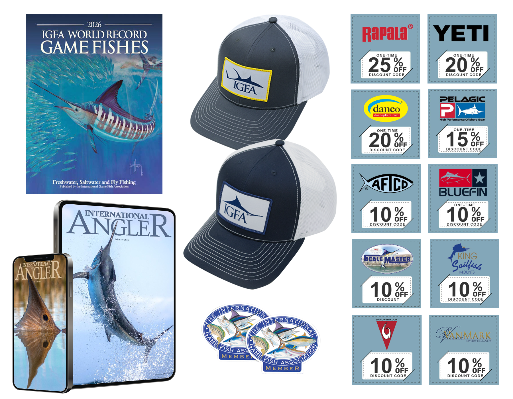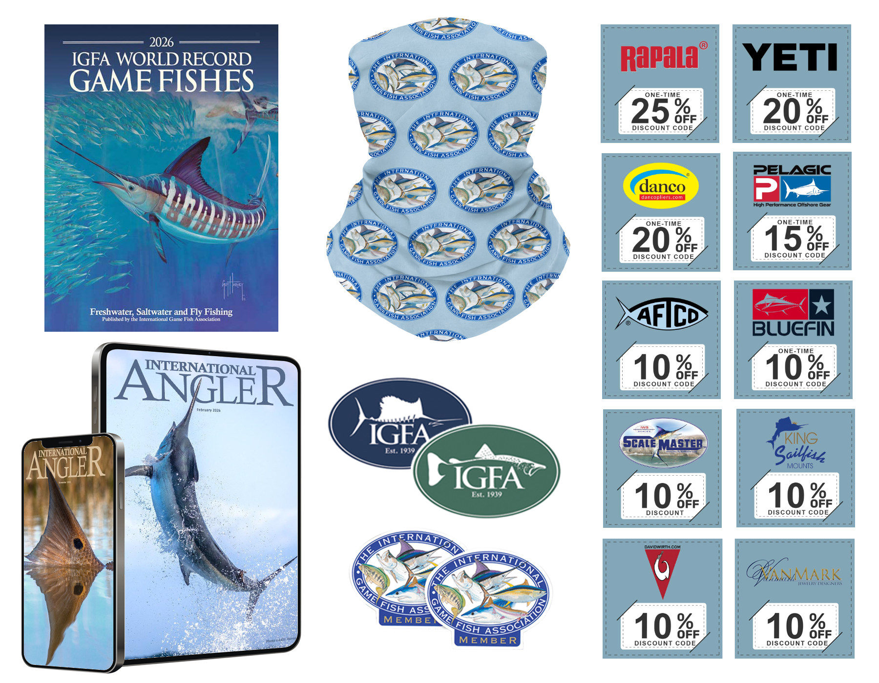 Annual Members receive all of the Digital Membership benefits, the World Record Game Fishes book, an IGFA logo face gaiter, IGFA logo decals, as well as access to the exclusive IGFA members-only discount program with great deals from some of your favorite brands!