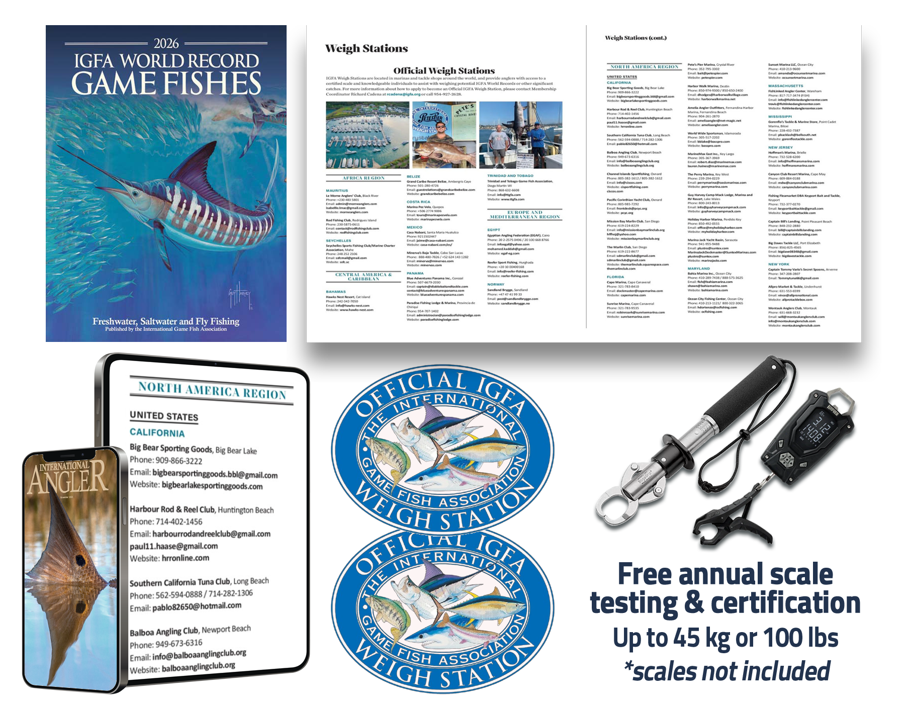 As an Official IGFA Weigh Station, your business receives formal recognition, inclusion on the IGFA website and World Record Game Fishes book, plus an annual membership, decals, an ID card, and a framed certificate. You’ll also gain referrals and promotional support from the IGFA, along with a free (required) annual scale testing and certification (up to 45 kg/100 lbs).
