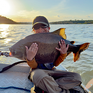 Nathan Barreto was fishing the Teles Pires River in Brazil on August 2, 2025, when he landed this 73-centimeter tambaqui. With this fish, Nathan has set both the IGFA All-Tackle Length and IGFA All-Tackle Length Junior World Records for the species. The record tambaqui struck a worm and was boated after a brief fight. Nathan then measured the fish on his Official IGFA Measuring Device before releasing the fish safely.