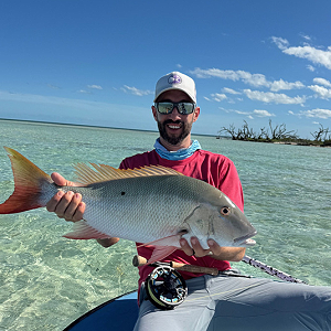 On October 31, 2025, Captain Nick LaBadie was fishing in Grand Bahama when he landed this impressive 63-centimeter mutton snapper. With this fish, Nick has set the IGFA All-Tackle Length Fly World Record for the species. Nick was fishing with Whitney Rolle when this record snapper struck his shrimp fly. After recording the length on his Official IGFA Measuring Device, he released the fish safely.
