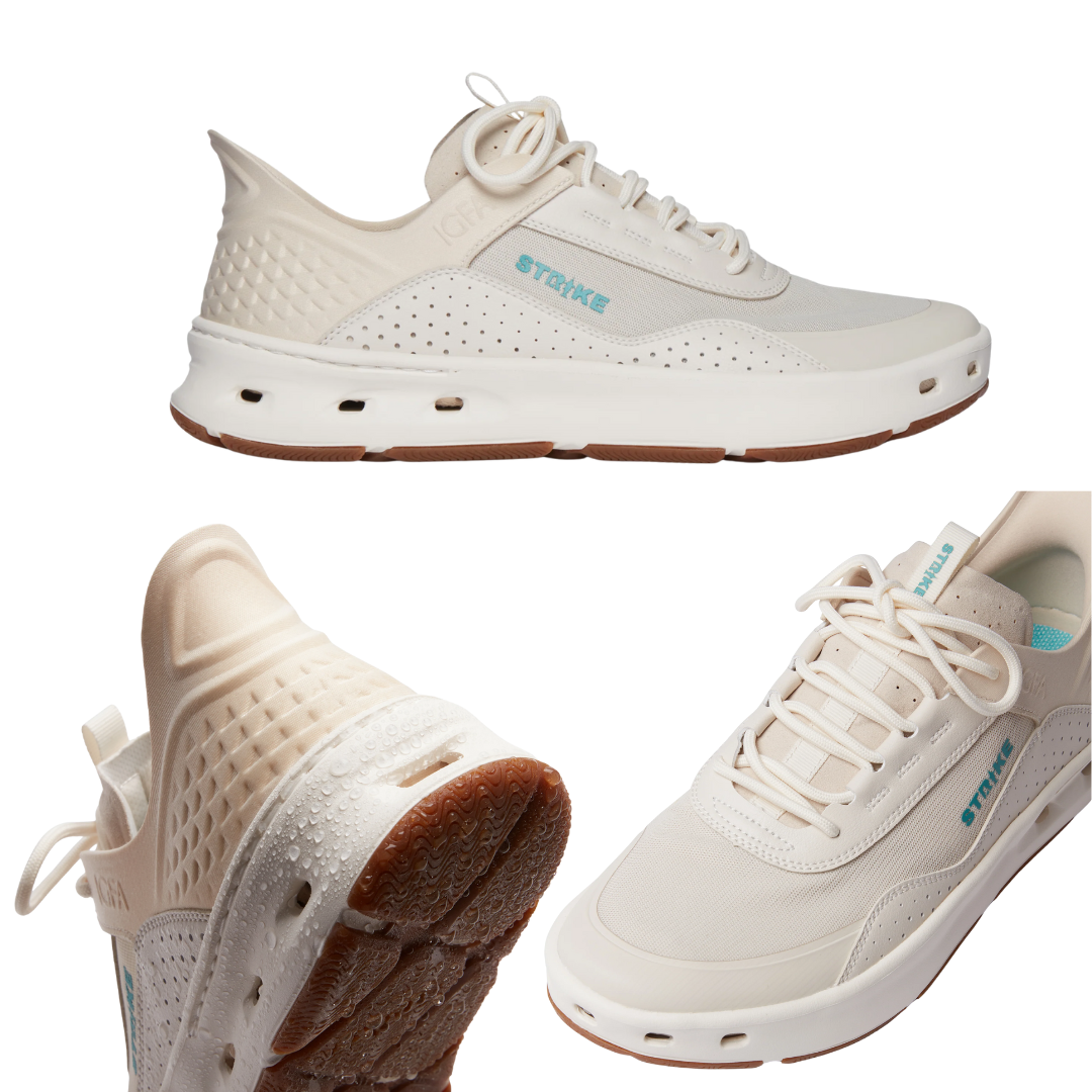 Built for anglers who demand performance and sustainability, the Strike Bluefin Lace Sneaker delivers lightweight comfort and dependable traction on deck and beyond. A breathable upper made from SEAQUAL® YARN uses upcycled marine plastic to help reduce ocean pollution, while rapid drainage keeps feet dry during wet conditions. The secure lace-up design and protective TPU toe bumper enhance durability, while the EVA midsole improves stability for long days on the water. Finished with a Solum BioTread™ outsole, this sneaker provides reliable multi-surface grip and gradually releases plant-based nutrients back into the environment as it wears.