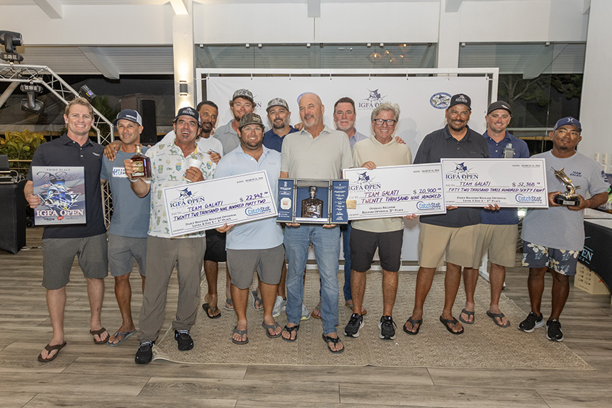 Team Galati (above), captained by Tony Carrizosa, with anglers Sean Dooley, Thomas Garmany, Justin Healey, IGFA Gill Keech Heavy Tackle awardee Pat Healey, Lance Hightower, and West Rivers finished in third place with 67 sails and one blue marlin, including an amazing performance on day one of 4,600 points, eventually finishing the tournament with 7,100 total points.