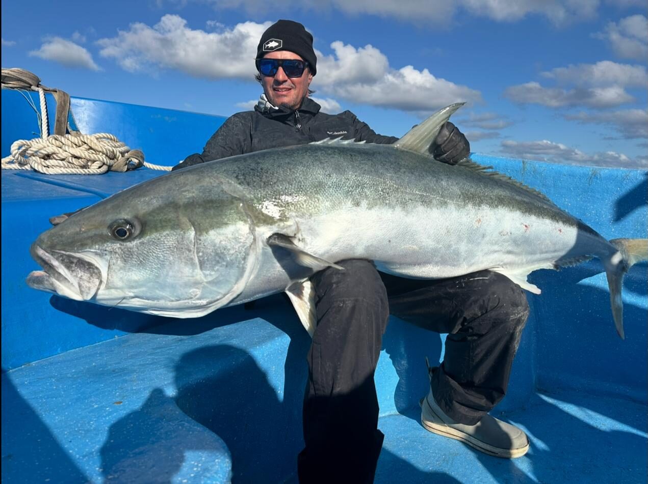 Jose Antonio Vallarino was fishing the Juan Fernandez Islands in Chile when he landed this incredible 159-centimeter southern yellowtail. With this fish, Jose has set the IGFA All-Tackle Length World Record for the species. He was fishing with Jorge Gonzalez Chamorro aboard the Elena 1 when the record fish struck his lure. He was then able to record the length on his official IGFA Measuring Device before releasing the fish safely.