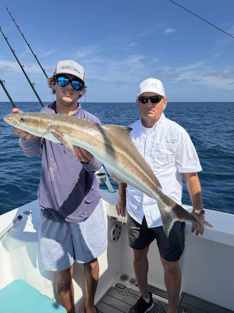 After class, students left from Pier Sixty-Six Marina with Captain Kevin Lamadrid aboard the HammerCatch and turned south out of Port Everglades inlet to start their day. With a light NW wind, Capt. Kevin opted to set the boat up to drift over some structure in 130 feet of water. They were able to get two kites up with the help of the helium balloons and fish a mix of goggle eyes and threadfin herring, as well as a goggle eye on a weighted flat line. Not long after, Brian Scheidegger went to battle with his first sailfish that ate a threadfin off the kite! After a 10-minute fight and some acrobatic jumps, they got a healthy release on that fish. With no more bites, Capt. Kevin kept them moving south towards Haulover inlet, where he set up in about 150 feet of water. This time, their goggle eye on the weighted flat line got bit, and Wayne Baker bested a cobia that was just a few inches under keeper size.